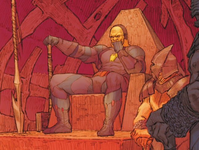 Mongul II was left a vast empire of fortune and might from his father. The entire planetoid of Warworld, alongside multiple star systems and galaxies were transitioned to him by default in the sudden passing of the Elder, including two entire Lantern Corps.Mongul II would remove the Yellow and Red Rings from his hands and dispatch them to the outer systems, where hopefully they would find their true leaders. He had no business meddling with the Emotional Spectrum, nor did his new empire need such unrest in its infancy. He also released the corpsmen his father had held prisoner in the dungeons.Despite what he does, his father's reputation may be one he can never precede. The future will tell. For now, he will be watching the gladiator matches of legend and planning his next move.